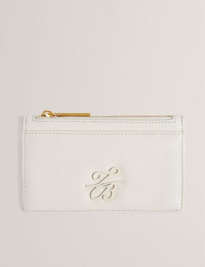 Ted Baker MARLEAH - TB Logo Leather Zip Card Holder Women Wallets Ecru | Malaysia 4093-TVJQH